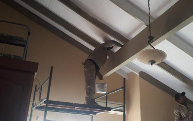Before painting commences, repairs such as waterproofing and rust treatment are attended to.