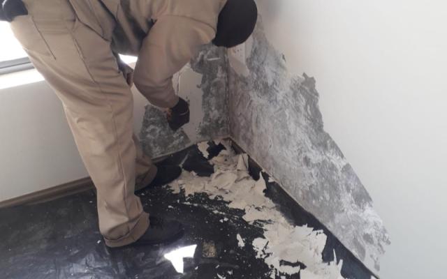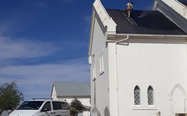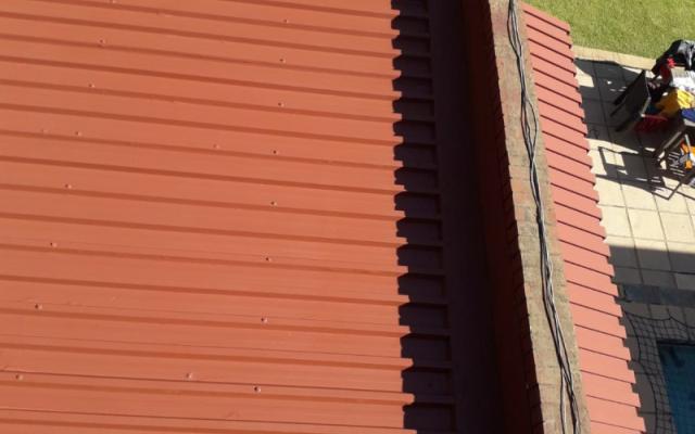 The repair process is followed by a cleaning process, where the roof or walls are cleaned with an ultra-high pressure cleaner, or steel brushes, to remove loose paint and dirt, depending on the type of surface.